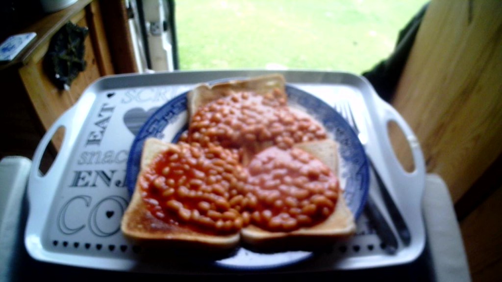 I bowled into the hotel grounds, leaving the bike outside reception and in full view of the bar, so that when Liam came along he was bound to clock it, and then I went off for some munch…… baked beans on toast were the order of the day!!!!! What would I do without that wonderful cuisine?!!!! 🙂